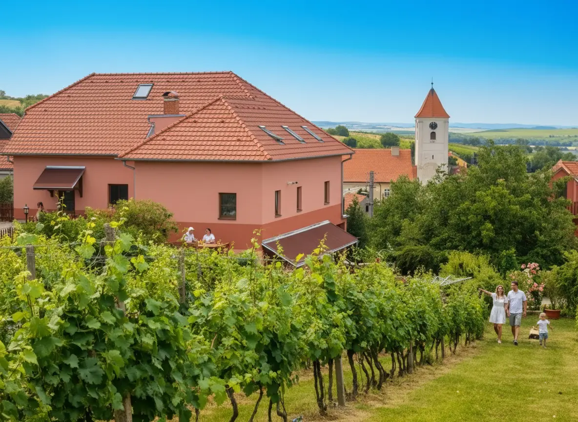 "Krásné, čisté pokoje a velmi vstřícný přístup majitelů. Oceňujeme společnou kuchyňku, která je pro nás k nezaplacení. Okolí je plné zřícenin hradů, což naše děti moc bavilo prozkoumávat. Večer jsme si pak v klidu vychutnali skvělá přívlastková vína přímo u zdroje."